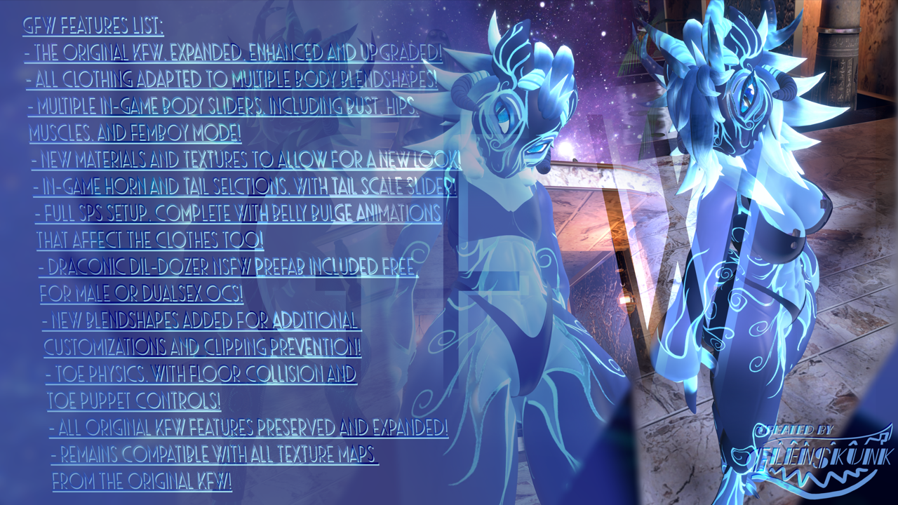 - All features of the original NSFW KFW have been preserved with updates; existing NSFW KFW textures are compatible with the GFW with no modification needed!
